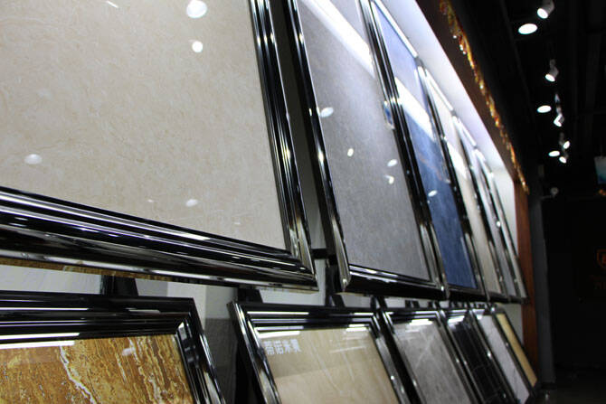 的确,亮晶晶的地面,是刚拖过地,还是刚浇的水泥地面没干?进门的人会犹豫着不敢踩。这就是八马瓷砖展厅给人的第一印象。实际上,八马瓷砖的展厅早已在去年(2015年)10月就竣工了,只不过地面刷的是地坪漆,类似上了桐油的表面效果,很容易让人产生这种美丽的误会。