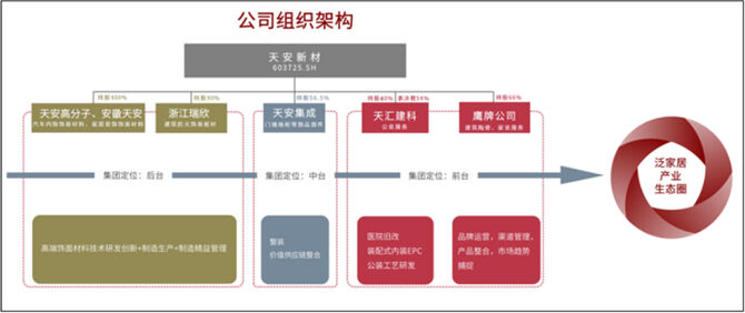 天安新材创立于2000年,是2017年A股上市公司,起初主要做生态新材,包括汽车内饰饰面材料、防火板材、家居装饰饰面材料等。